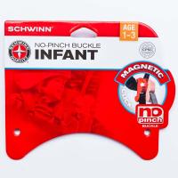 Description: This recall involves infant bicycle helmets with magnetic no-pinch chin strap buckles. The helmets are made for infants ranging from one to three years old. The helmet and its straps come in various colors and design patterns. The buckles have small plastic covers and enclosed magnets. "SCHWINN" is printed on the front of the helmets. Only helmets with the magnetic no-pinch chin strap buckles are affected by this recall.